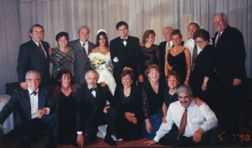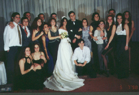 Se puede apreciar a los novios que junto a sus t�os Preller (puchas que est�n viejos!!) y los correspondientes Adjuntos (as), muestran sus caras de felicidad en el memorable evento.